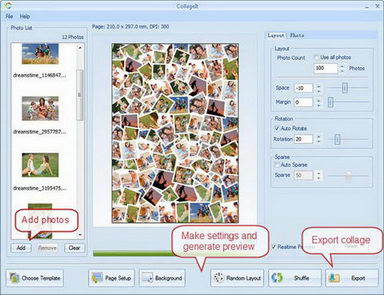 CollageIt是一個易於使用的自動拼貼製造,這使得照片自動拼貼,只有三個步